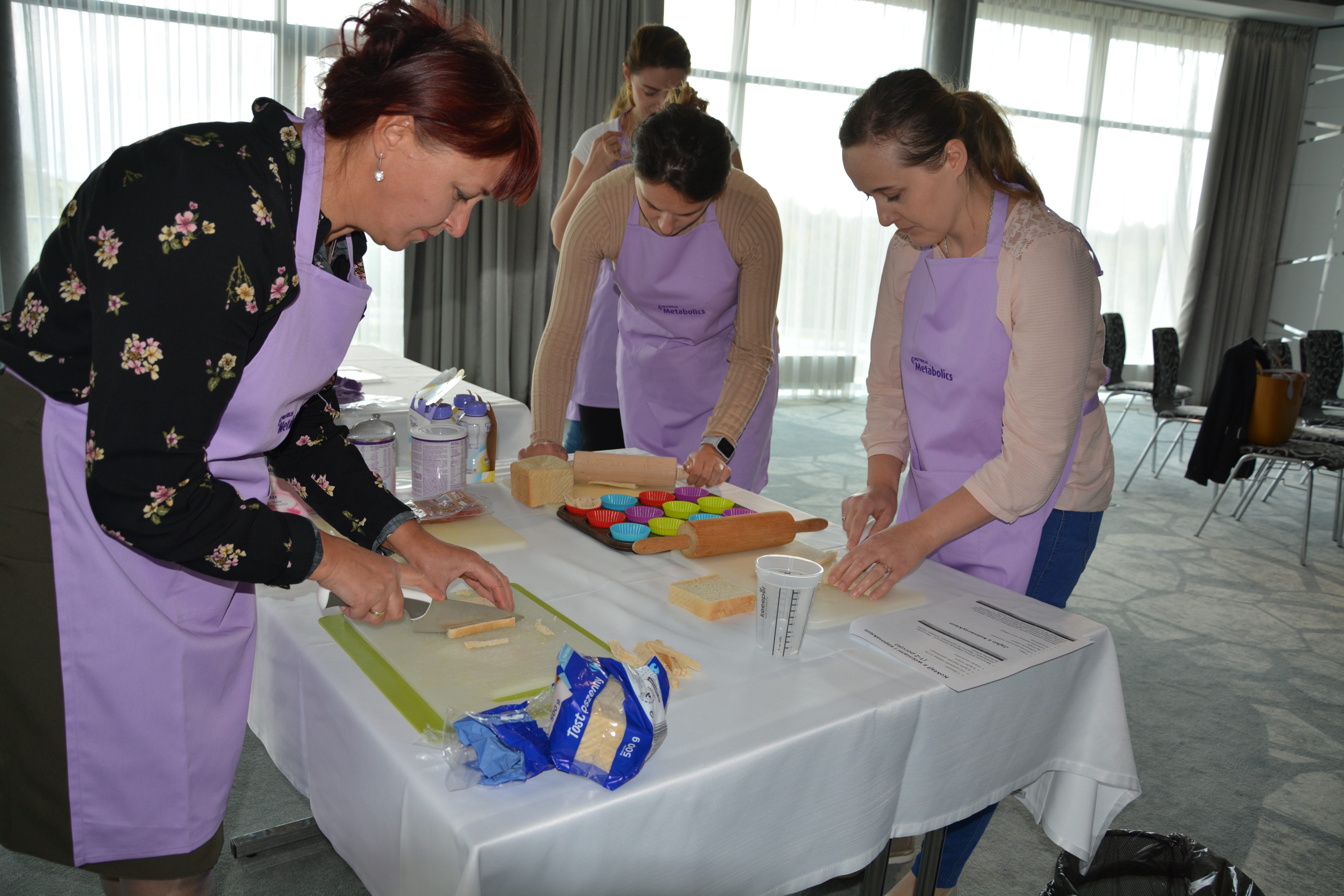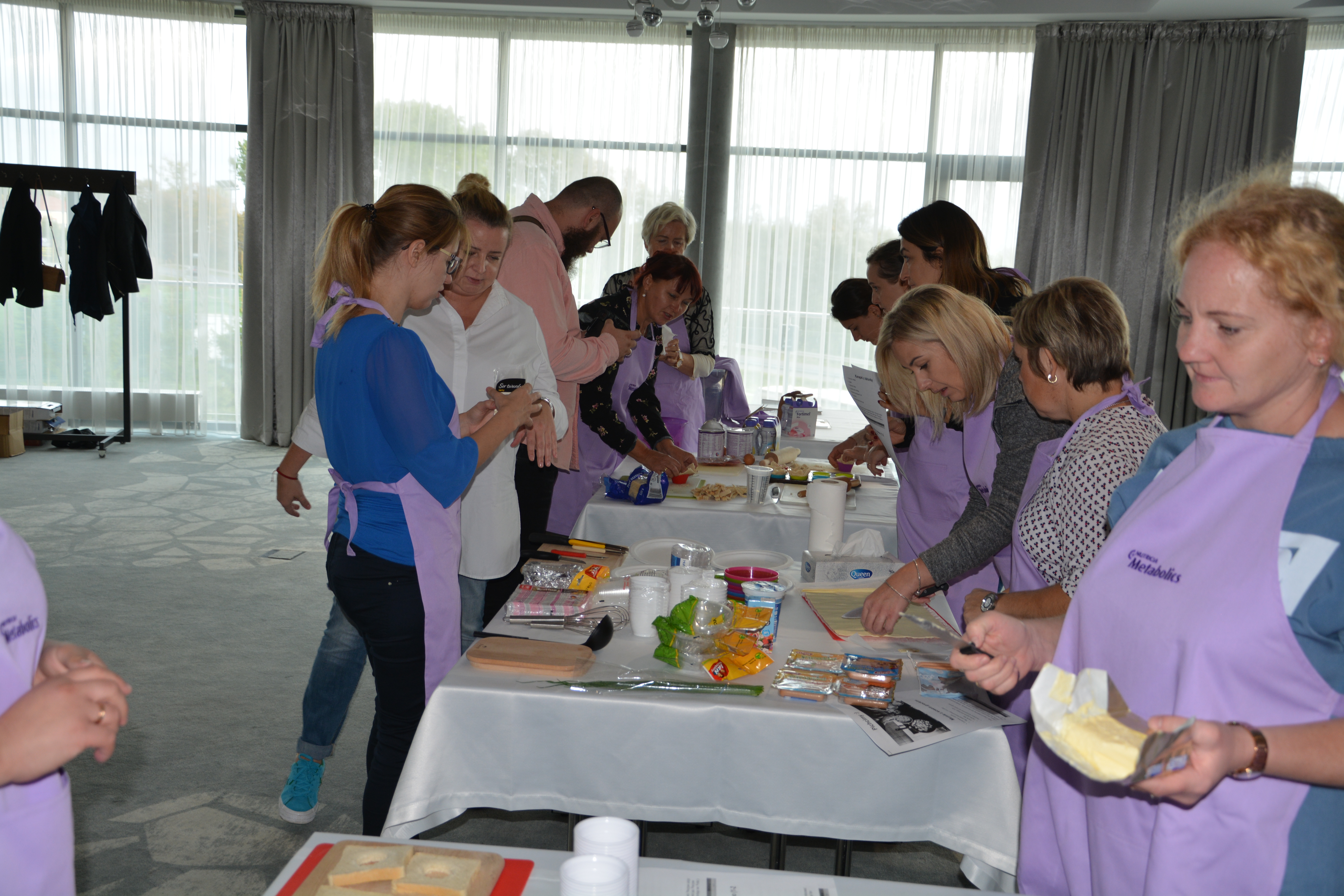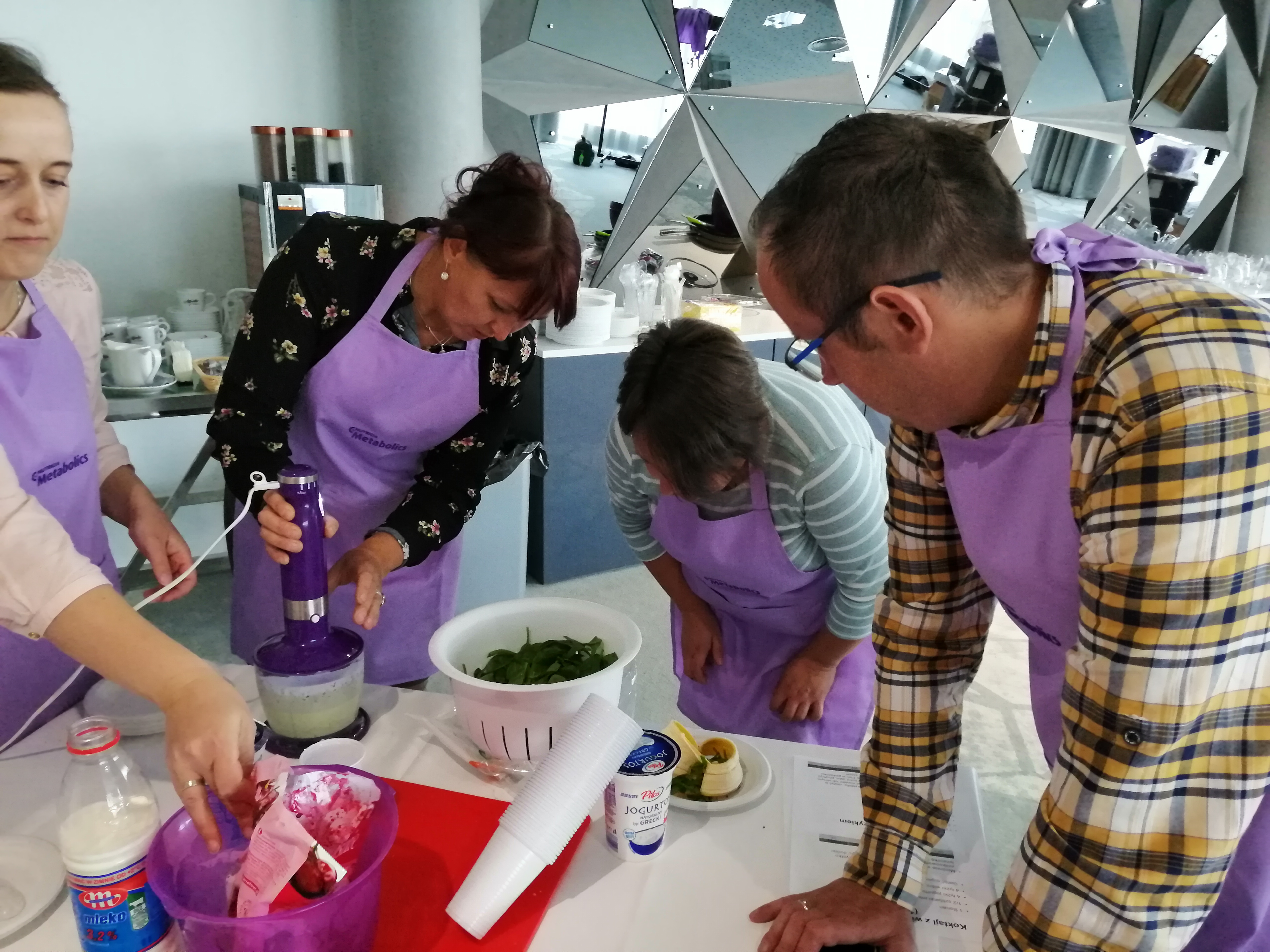 Po części wykładowej przeprowadzono warsztaty mające na celu praktyczne wykorzystanie wiedzy teoretycznej. Pani dietetyk z pomocą uczestników przygotowała posiłki na bazie produktów zalecanych w diecie. Warsztat zakończył się degustacją powstałych dań.