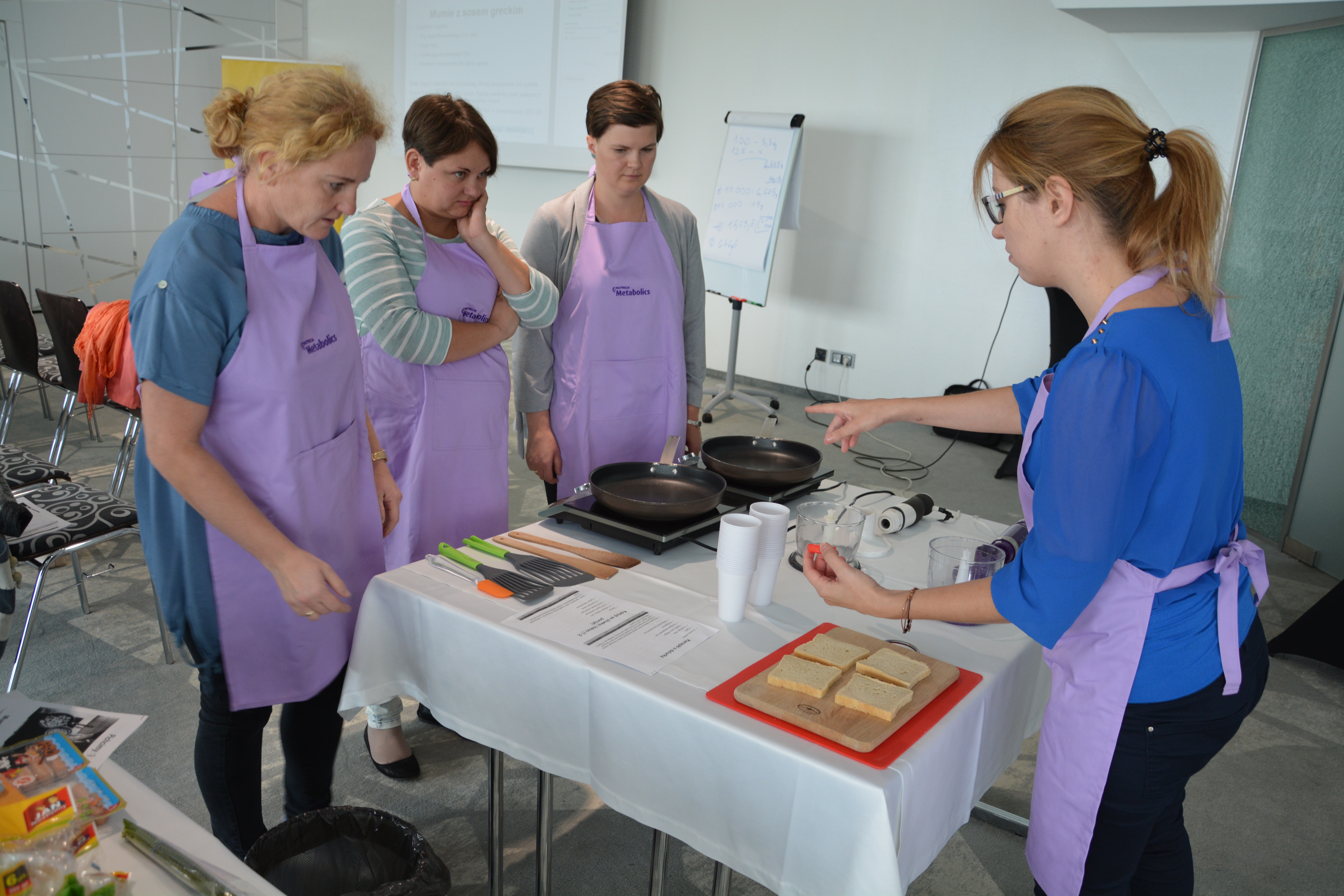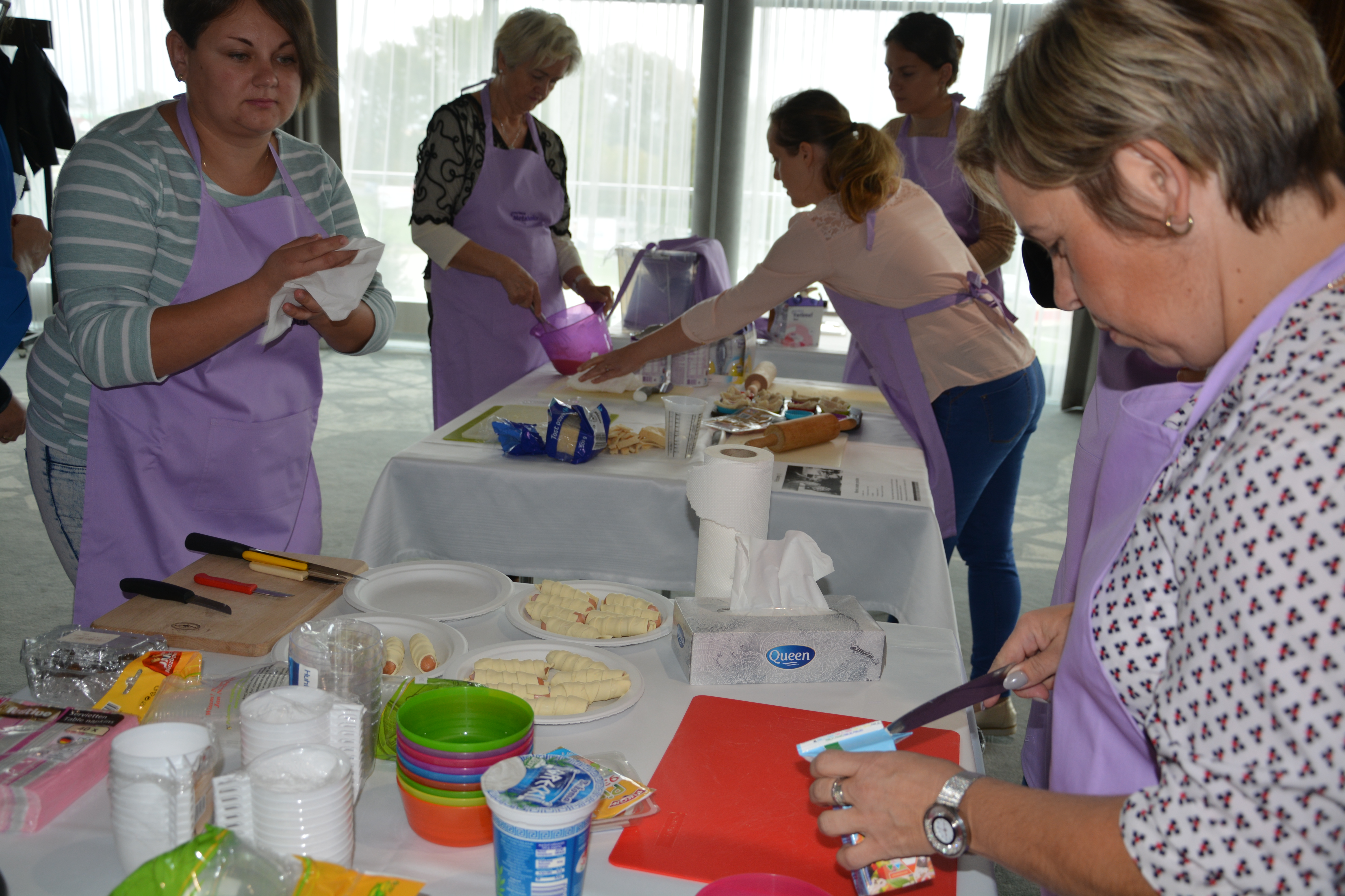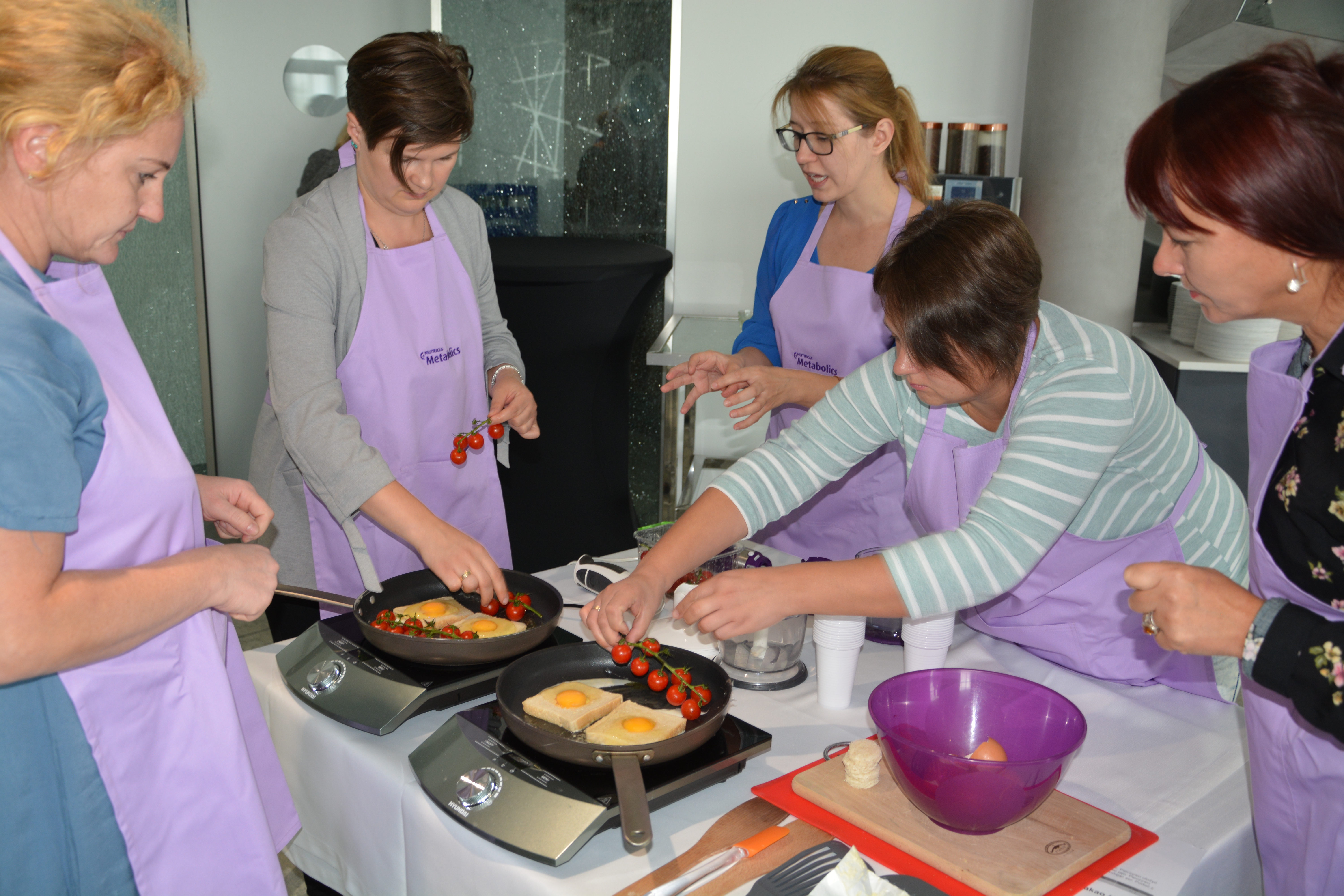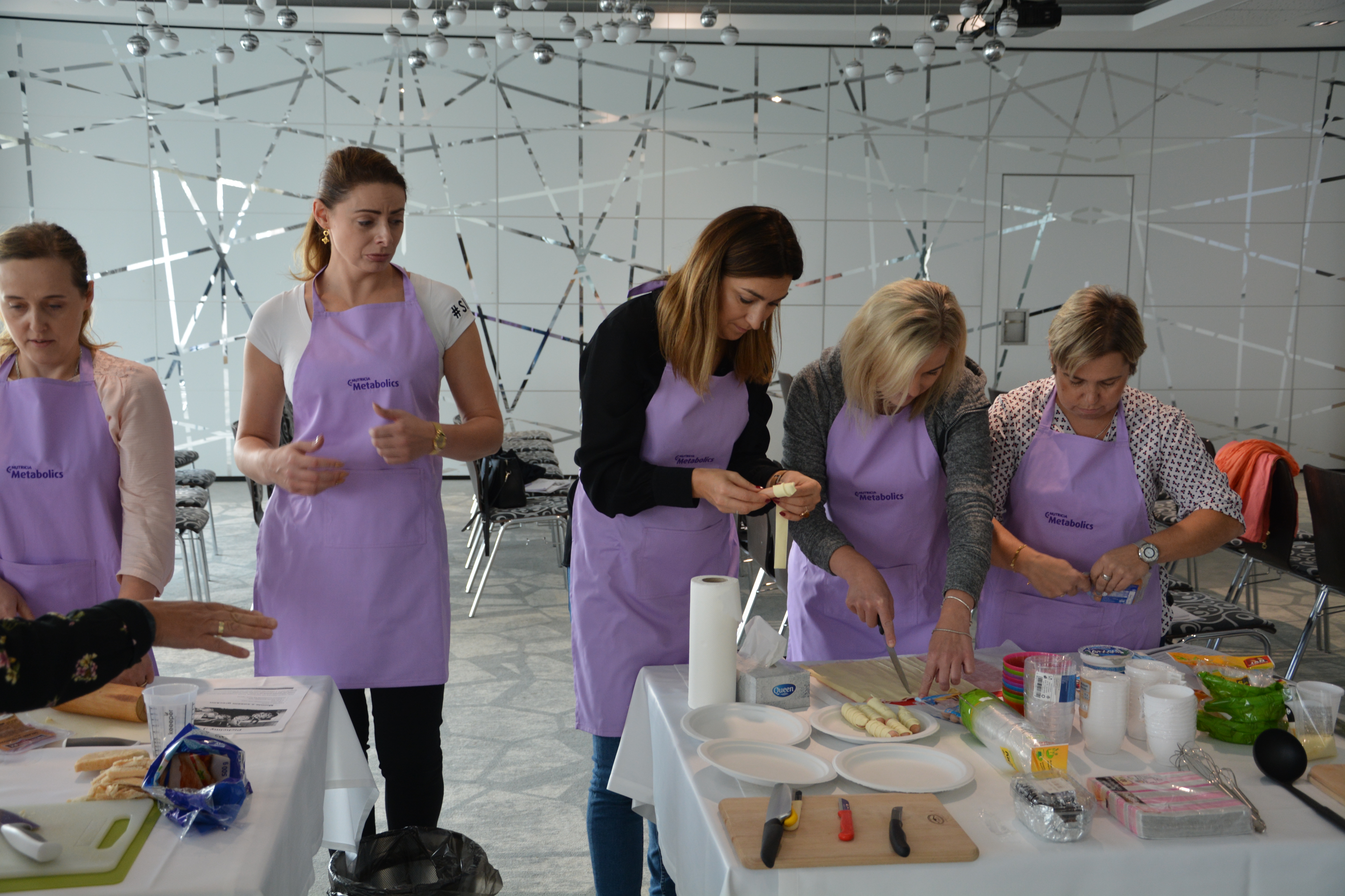 Po części wykładowej przeprowadzono warsztaty mające na celu praktyczne wykorzystanie wiedzy teoretycznej. Pani dietetyk z pomocą uczestników przygotowała posiłki na bazie produktów zalecanych w diecie. Warsztat zakończył się degustacją powstałych dań.